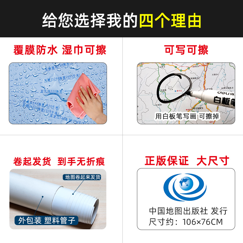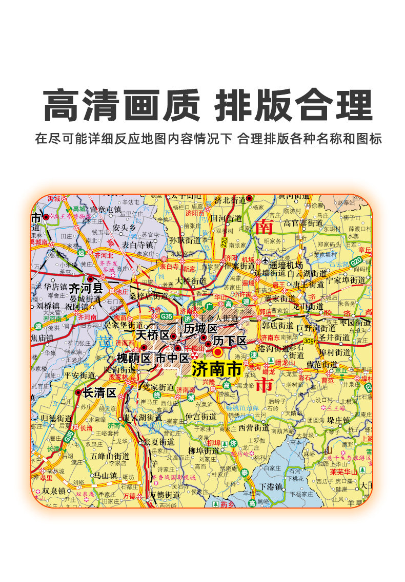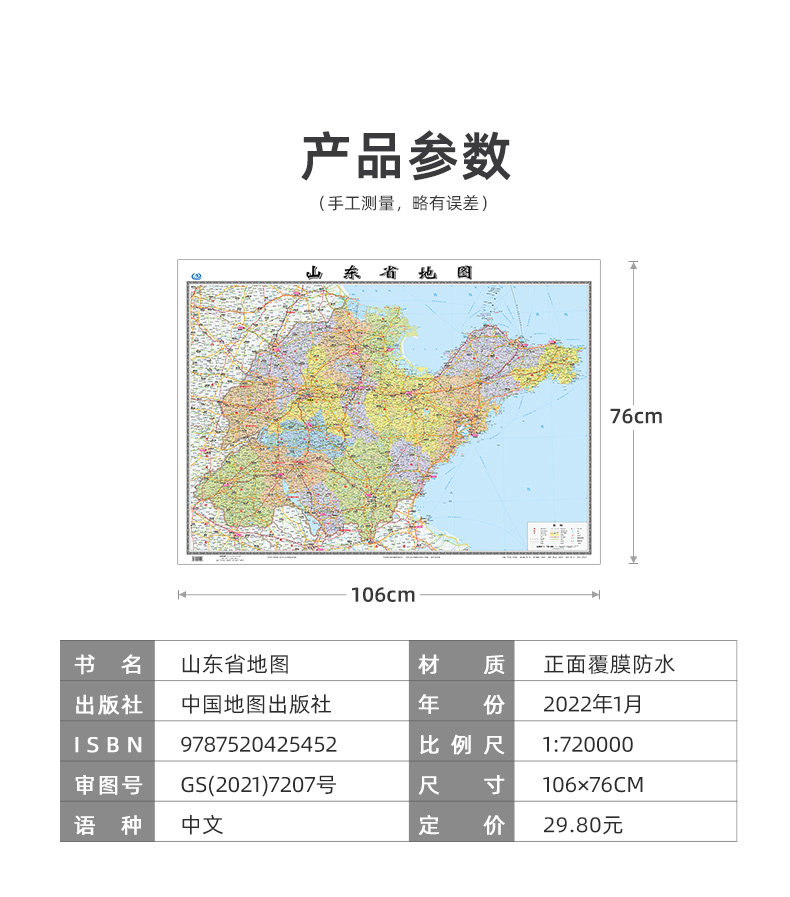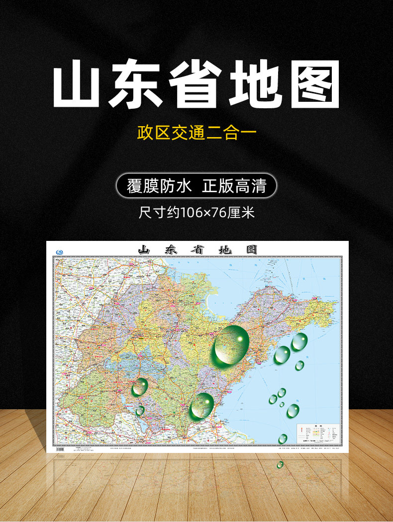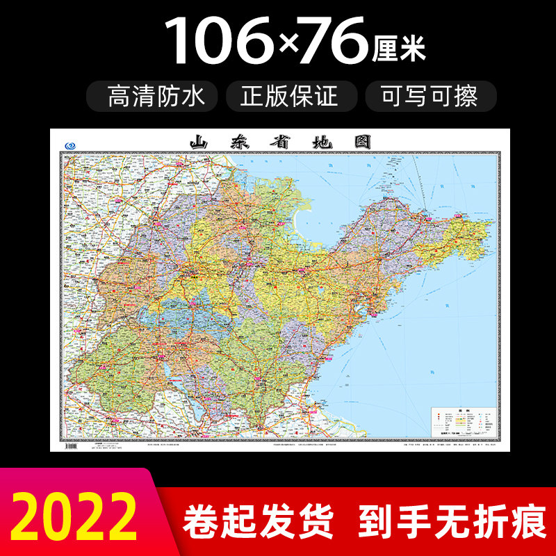 Карта провинции Шандун 2023 Новая версия новой версии большого размера составляет 106 см высотой 76 см. Настенные наклейки.