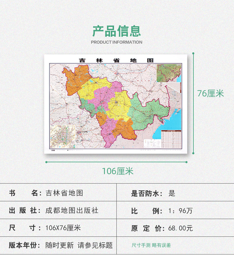 [Стена с утолщением в твердом переплете] провинциальная карта Jilin 2022 Новое подлинное использование стены пасты Рисунок 1,1 метра в длину