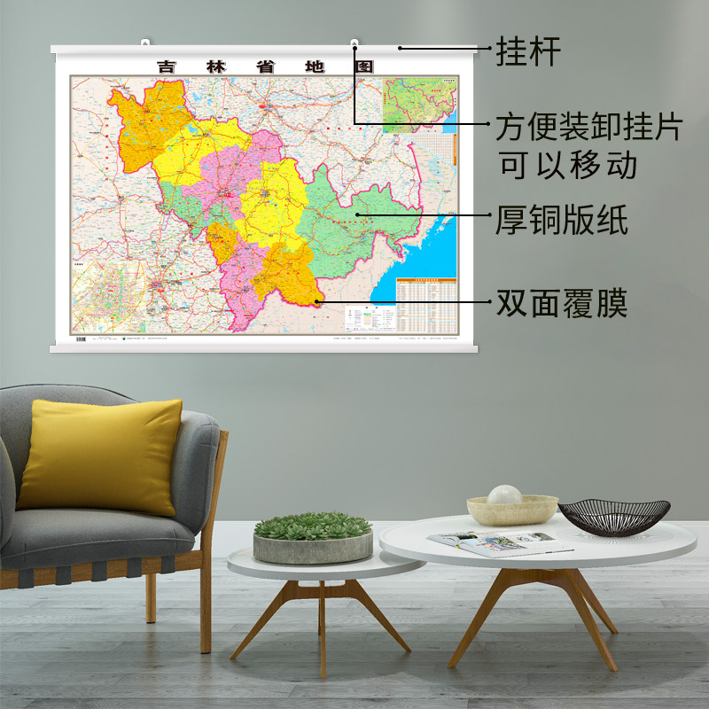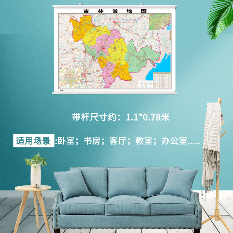 2022 Версия карты провинции Джилин Висящая карта 1.1 *78-метровая нарисованные настенные настенные палочки для домашних офисов и бизнес-конференц