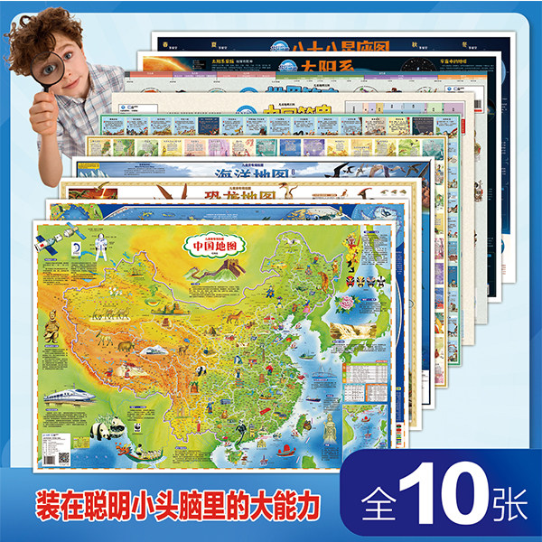 Этот набор серии карт включает в себя China + The World + Poetry + Idioms + Dinosaurs + Ocean + Краткая история Китая + Краткая история мира + Солнечная система + восьмидесяти восьми созвездий, направленная на то, чтобы обогатить знания о географии детей и расширить соответствующие популярные науки.