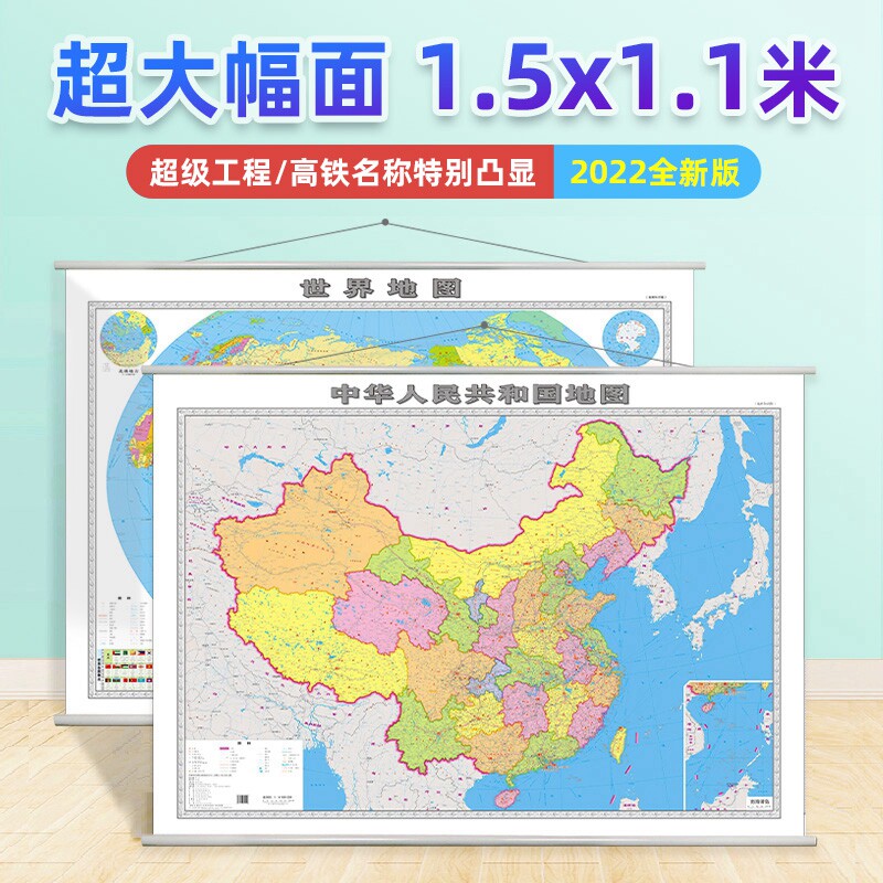 [Подлинная гарантия] 2022 Карта карты карты карты карты Китая карта мировой карты содержит 1,5x1,1 метра, в общей сложности 2 железнодорожные линии Super Engineering/High -Speed специально подчеркивает водонепроницаемость водонепроницаемости в декоративную живопись в бизнес -офисе.