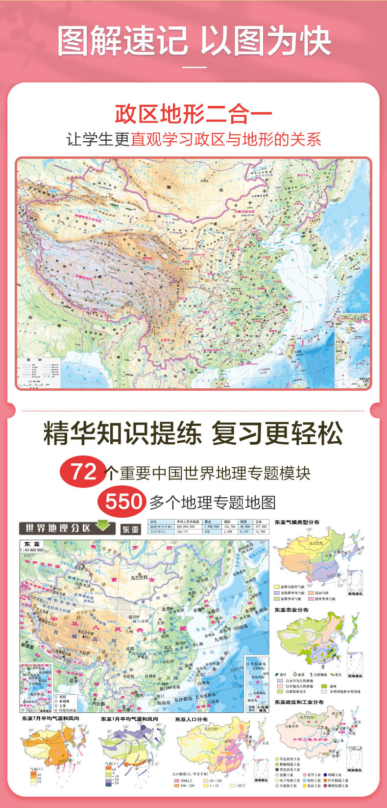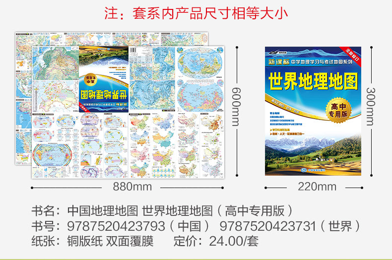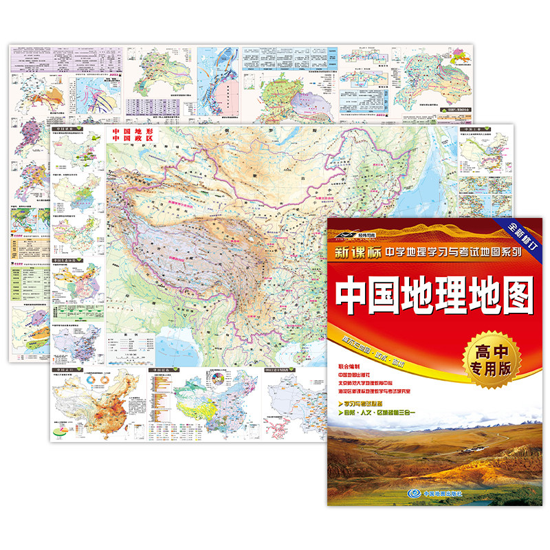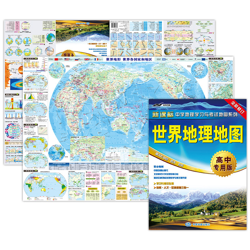 Китай + World Geographic Map · Профессиональное издание старших классов Географическое изучение и экзаменационная карта. Топографическая карта с большой форматом и китайская карта мировой топографической карты Ключевые трудности при вступительных экзаменах в колледже специально созданы для учеников старших классов