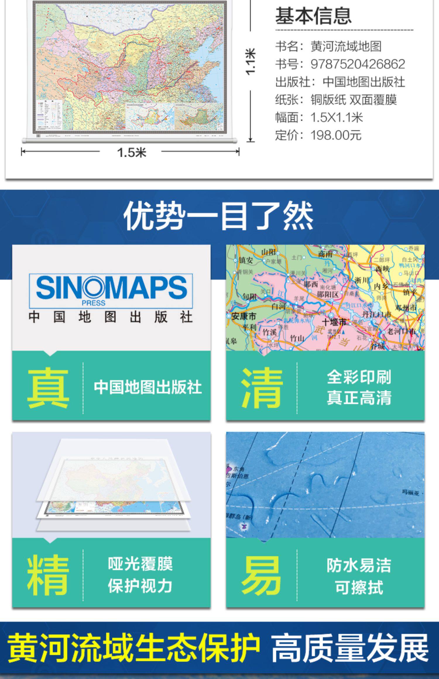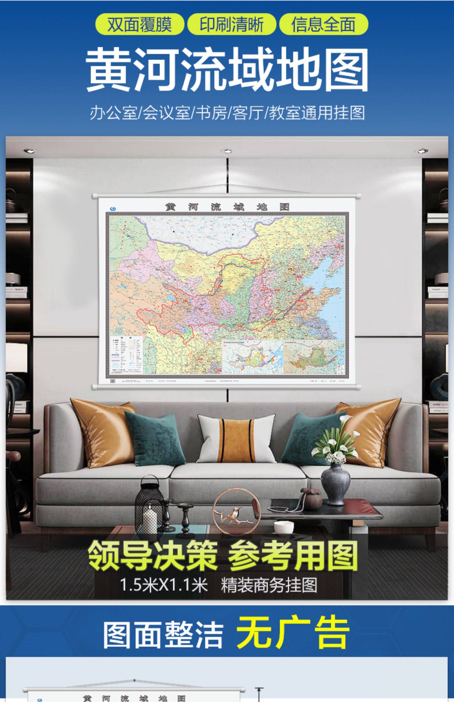 2022 Новая версия карты бассейна желтой реки Рисунок 1.5*1,1 метра политического окружного туристического туризма