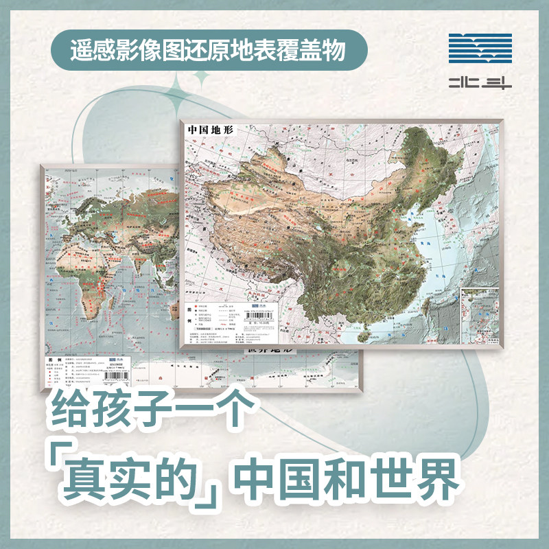 [Подлинный Бейду] В общей сложности 2 Трехмерные эндогические карты Zhongguo и World Topographic 3D S 36*25,5 см.