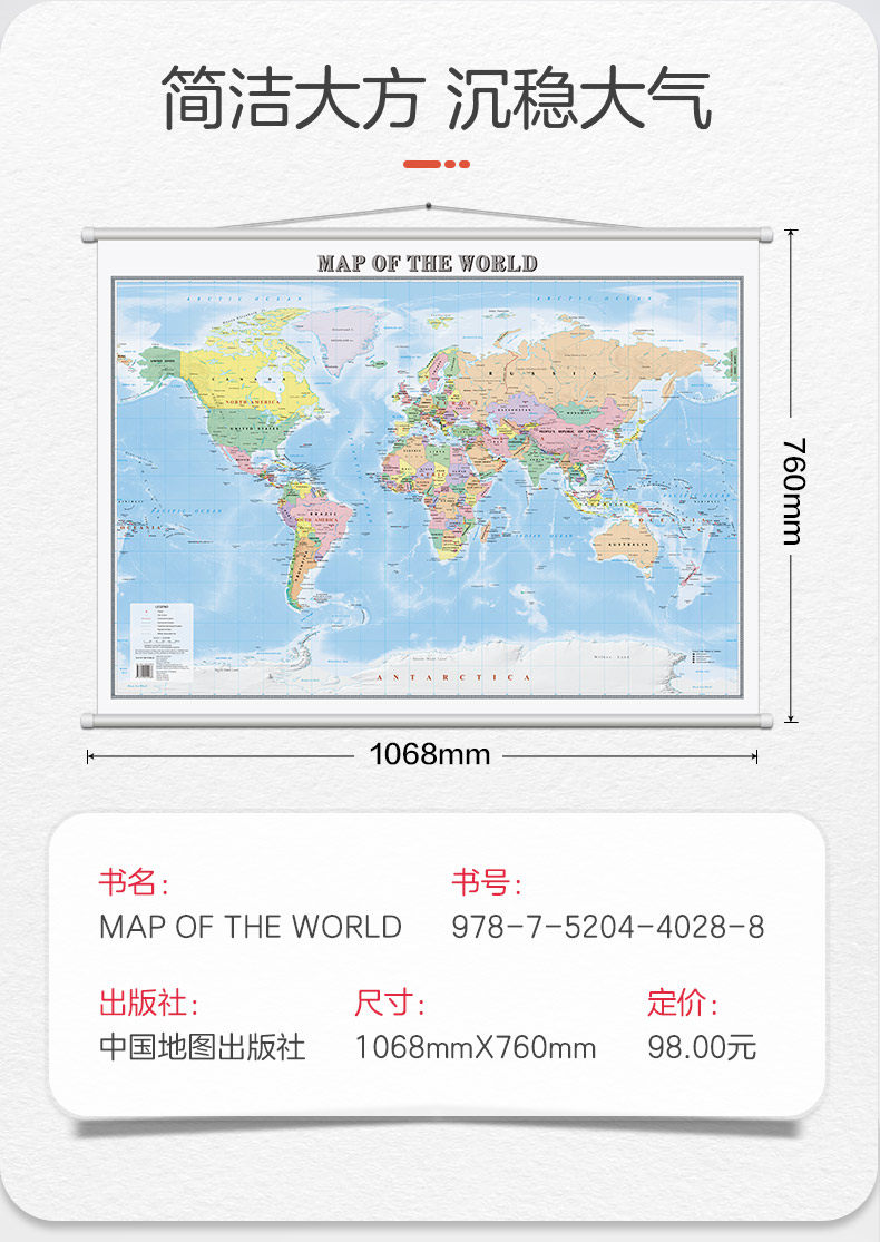 [Английская версия] Настенная диаграмма с картой мира на 2024 год. Карта мира размером 1068 × 760 мм, крупноформатная, бесшовная настенная диаграмма высокого разрешения для офиса, конференц-зала.