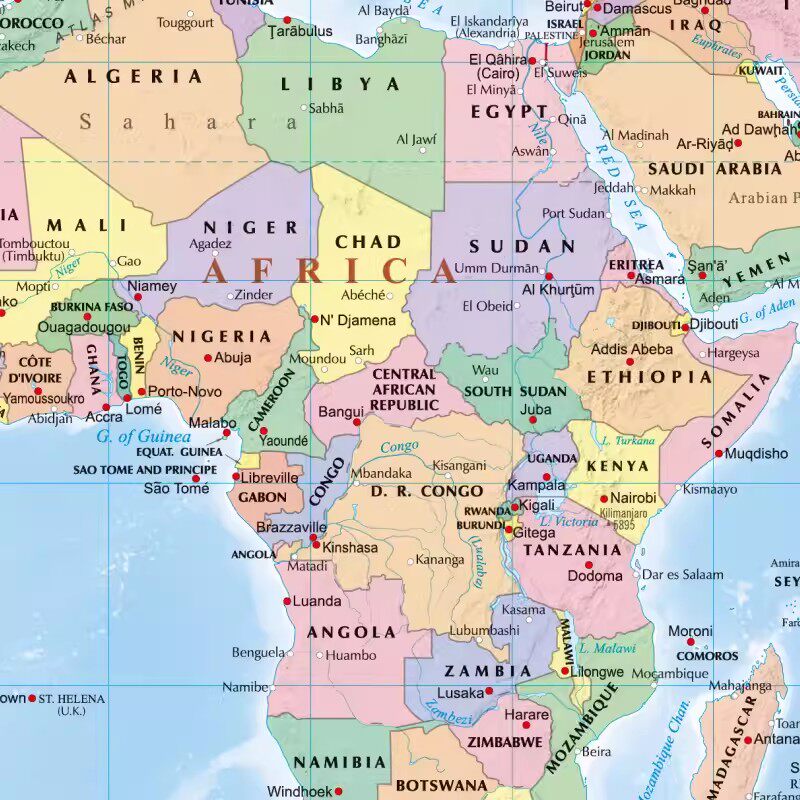 - Настенная диаграмма с картой Африки 98 юаней