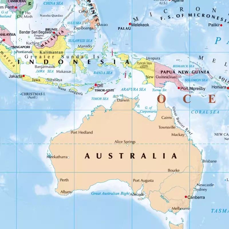 - Настенная диаграмма с картой Океании 98 юаней