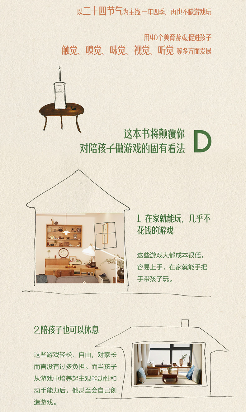 Эстетическое воспитание присутствует повсюду в жизни.Как начинающие отцы и матери, мы должны научиться питаться в жизни так, чтобы давать это нашим детям.Когда мы научимся видеть красоту в жизни, мы сможем проводить время, общаясь с нашими детьми, в любое время.В главе «Воспитание сердца новичка» есть игра про маш. Эта игра возникла из моего опыта работы с детьми, позволяющего осознать красоту деталей повседневной жизни.Книжка с картинками «Мама покупает маш» очень красивая. Здесь описана самая простая и реальная жизнь.Я читал эту книжку с картинками вместе со своими детьми и наблюдал, как А Бао и его мать покупали маш и готовили шербет.