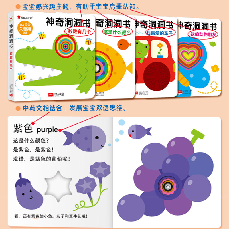 Книга с отверстиями, познавательная книга с картинками для раннего возраста, трехмерная флип-книга, книга рассказов, карточки, полный комплект, можно отрывать, 0-1-2-3 лет, образование и воспитание детей, раннее развитие