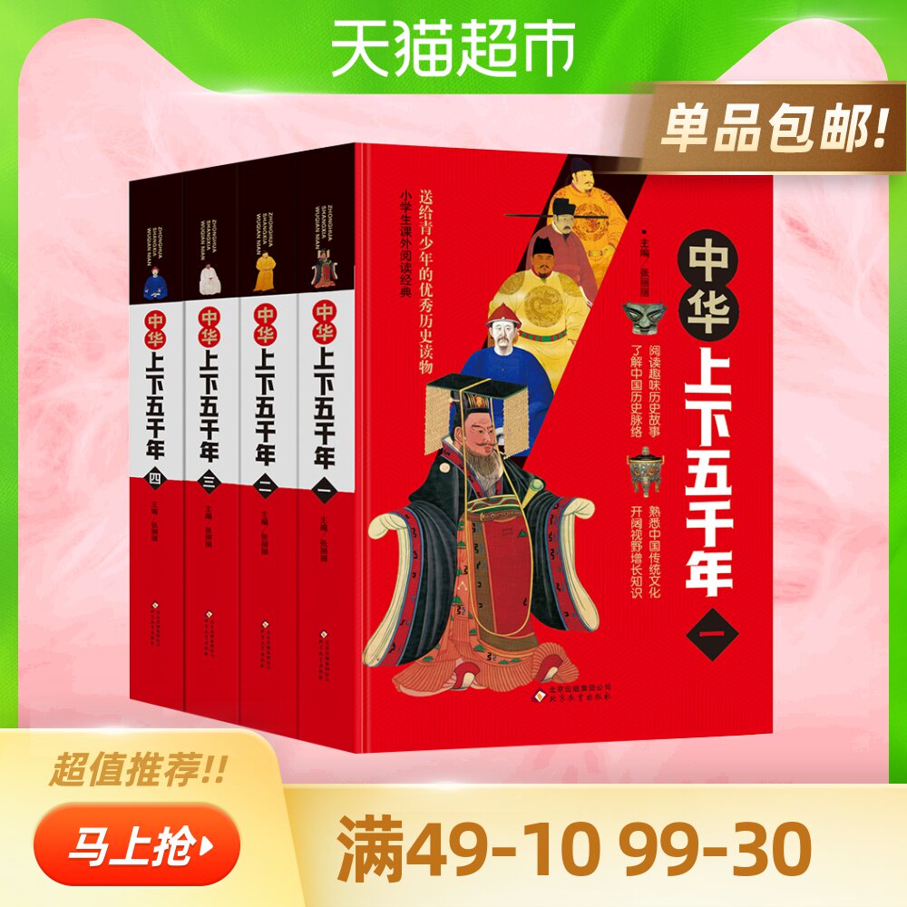 Пять тысяч лет книг, 4 тома из 4 томов учеников начальной школы внеклассные книги, китайские исторические истории Синьхуа книжный магазин