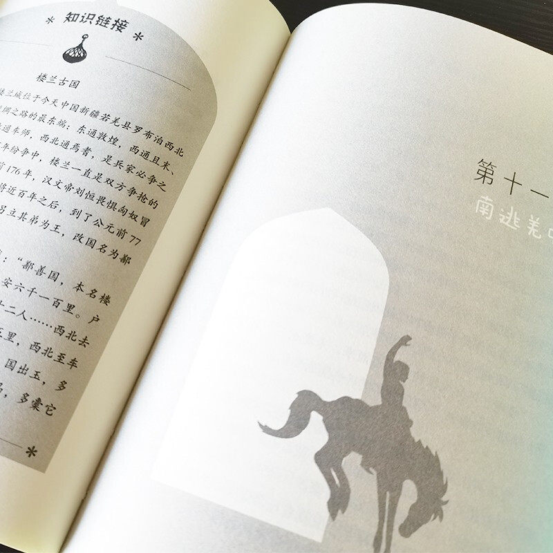 Эта книга представляет собой серию приключенческих историй, созданных известным писателем и исследователем детской литературы и исследователем Пенгом Ксулуо, с историческими событиями «Миссия Чжан Цянди в западные регионы» в качестве темы и включает в себя «встречу императора Ву из Хана», «Приключения гуннов», «Приключение Поплар -орела» и «Возвращение в город Чанган».11-летний мальчик Хук-маленький исследователь. Во время того, как он возился с «таинственными часами», оставленными ему его дедушкой, он волшебным образом отправился в далекую династию Западной Хань. Там он познакомился с Чжан Цянь, посланником династии Западной Хань, и Ган Фу, гида Xiongnu, и отправился с ними на миссию в западные регионы, лично переживая трудное путешествие Чжан Цянь, открывая шелковую дорогу. Автор использует удивительное воображение и конденсированный и мощный персонализированный язык, чтобы создать замечательное и вдохновляющее путешествие во времени и пространстве. Это не только позволяет молодым читателям понять трудный процесс, когда Чжан Цянь открывает шелковую дорогу, и встретить знаменитые исторические фигуры, такие как Чжан Цянь и Джаннена Шаньью, но также позволяет им понять уникальную топографию и рельефные формы пустыни Такламакан и популярных лесов. В то же время, по мере продвижения сюжета, молодые читатели пройдут по древним западным регионам, таким как Хук, Чжан Цянь и Ганфу, путешествуют по древним западным регионам, таким как Хунс, Чеши, Дейуан и Дейэжхи, и первоначально устанавливают географическую концепцию Шелковой дороги, которая вдохновляет сильный интерес к изучению дороги Силка.
