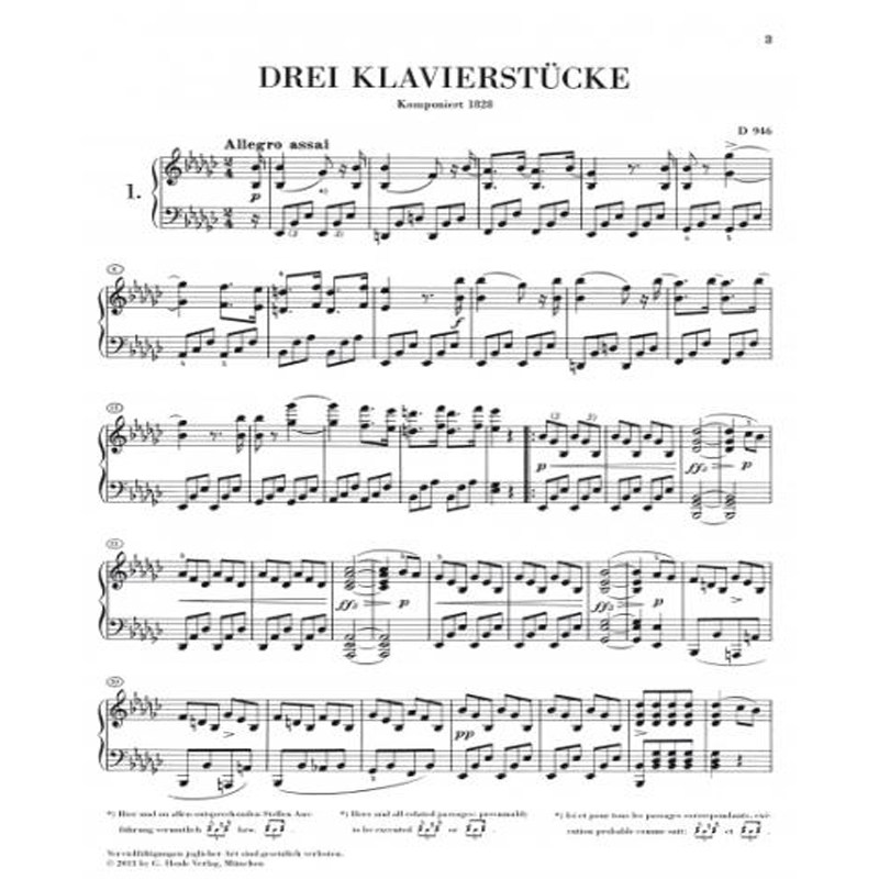 Оригинальные зарисовки Шуберта Шуберта Три фортепиано D946 Schubert 3 Klavierstucke D946 Solo HN66 Sonato Music Scores, пять энтузиастов классической музыки Spectrum