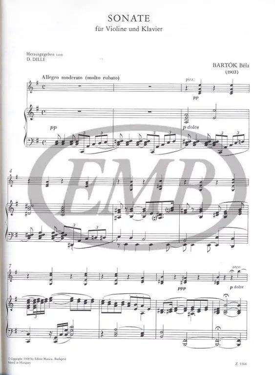 Бартарная скрипка Соната (1903) прикреплена к фортепианной аккомпанемент Барток Бела Соната скрипка и фортепиано Z 5366