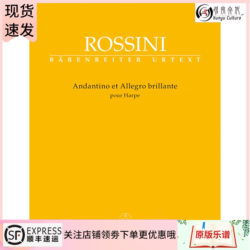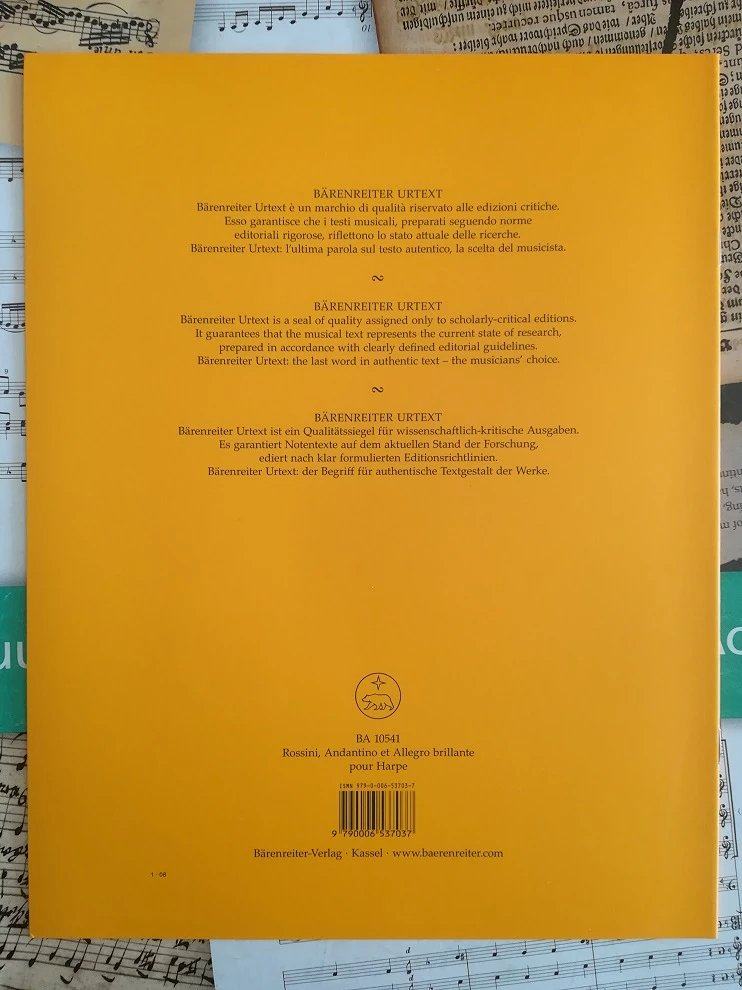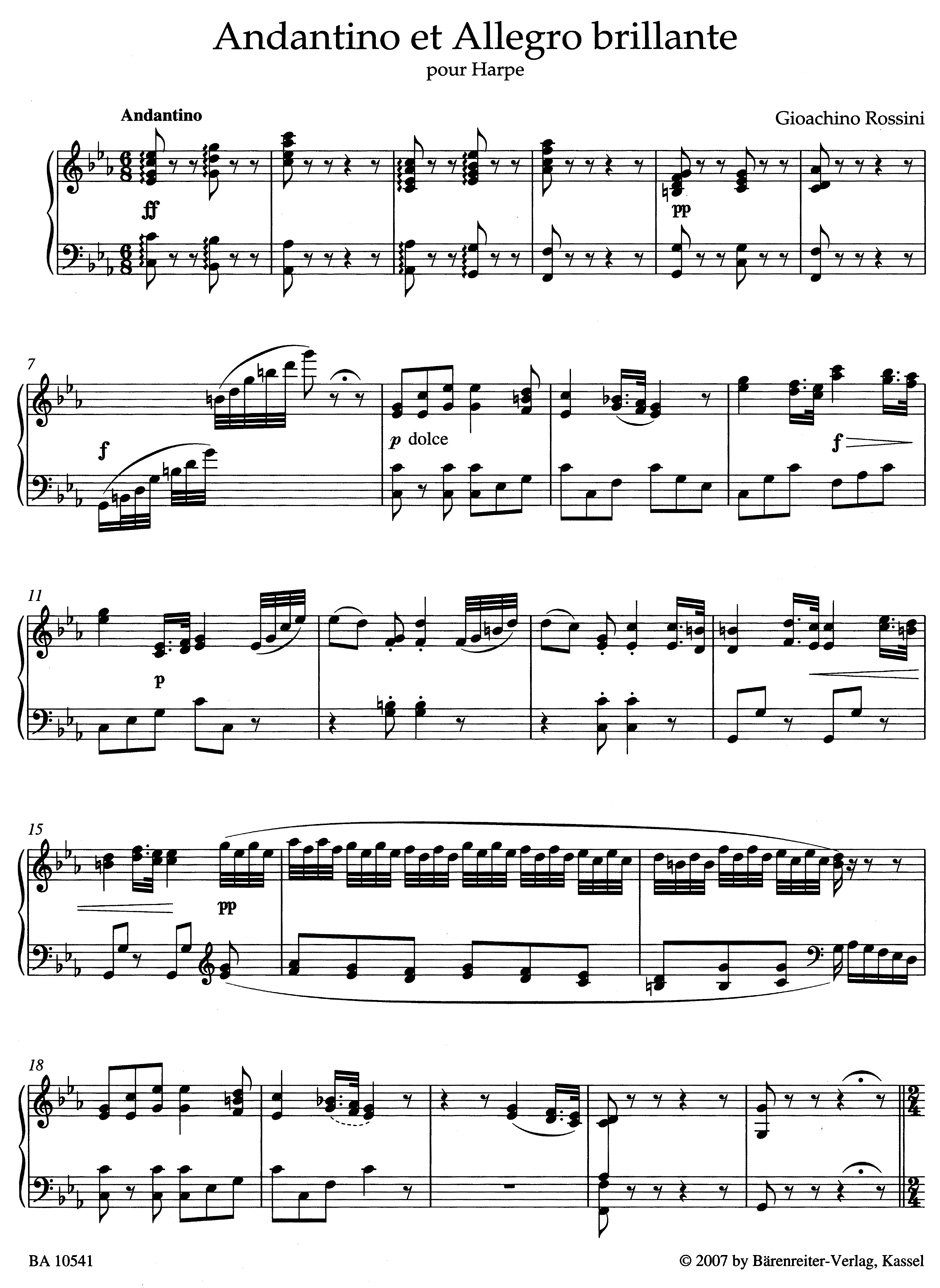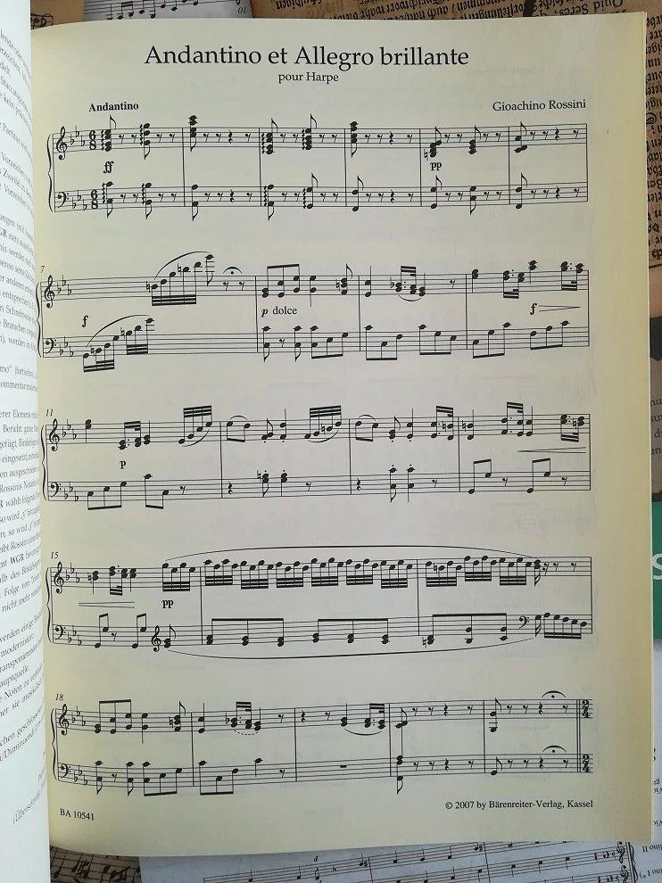 Блестящие небольшие аспекты Розини и оригинальное издание Аллегро Германии оригинальной книги Аллема Россини Андантино и Аллегро Брилланте Пайр Харпе BA10541