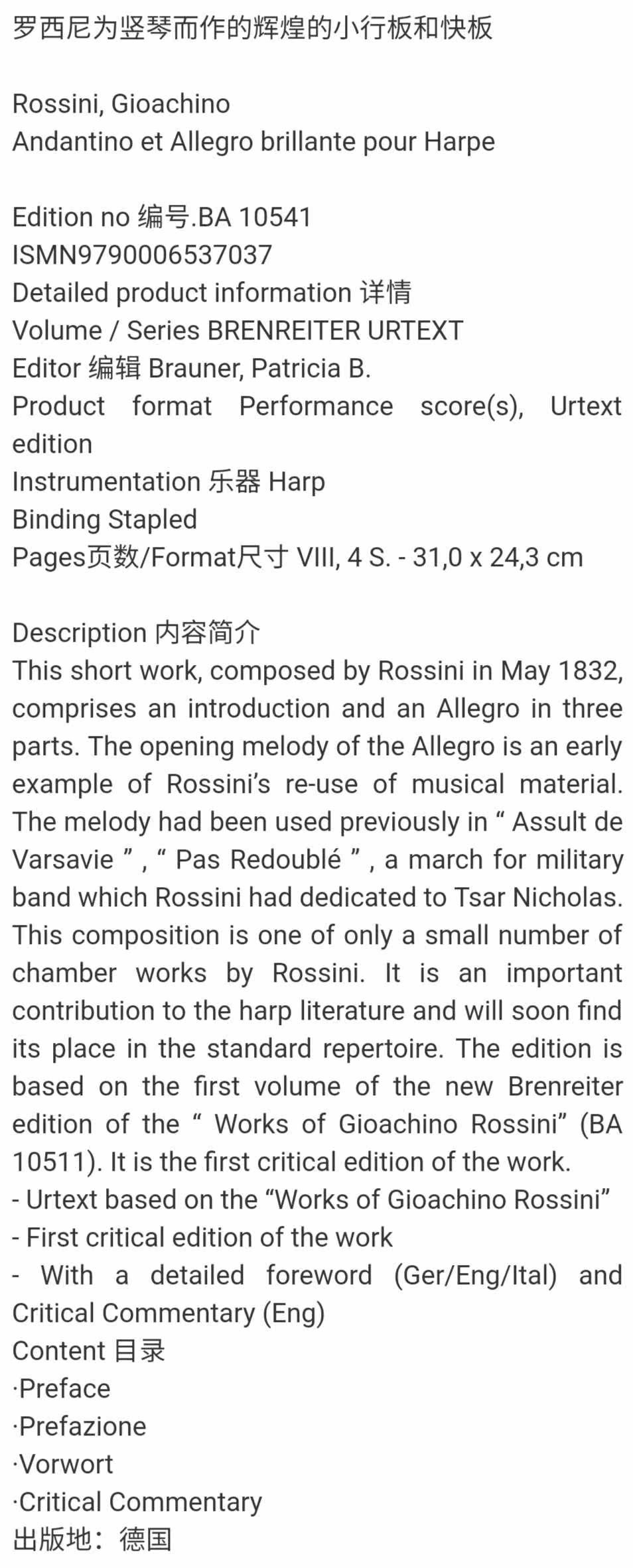Описание товараPHA+PHAgc3R5bGU9InRleHQtYWxpZ246IGNlbnRlcjsiPjxzdHJvbmc+PHNwYW4gc3R5bGU9ImNvbG9yOiAjMzMzMzMzO2ZvbnQtZmFtaWx5OiBtaWNyb3NvZnQgeWFoZWk7dGV4dC1hbGlnbjoganVzdGlmeTsiPlJvc3NpbmksIEdpb2FjaGlubzwvc3Bhbj48YnIgc3R5bGU9IiI+PHNwYW4gc3R5bGU9ImNvbG9yOiAjMzMzMzMzO2ZvbnQtZmFtaWx5OiBtaWNyb3NvZnQgeWFoZWk7dGV4dC1hbGlnbjoganVzdGlmeTsiPkFuZGFudGlubyBldCBBbGxlZ3JvLCDRgtCw0LrQvtC5INC60LDQuiBpbCByYW5kIHBvdXIgYXJwIGU8L3NwYW4+PGJyIHN0eWxlPSIiPjwvc3Ryb25nPjwvcD48cCBzdHlsZT0idGV4dC1hbGlnbjogY2VudGVyOyI+PHN0cm9uZz48YnI+PC9zdHJvbmc+PC9wPjxwIHN0eWxlPSJ0ZXh0LWFsaWduOiBjZW50ZXI7Ij48c3Ryb25nPjxzcGFuIHN0eWxlPSJjb2xvcjogIzMzMzMzMztmb250LWZhbWlseTogbWljcm9zb2Z0IHlhaGVpO3RleHQtYWxpZ246IGp1c3RpZnk7Ij7QoNC+0LfQuNC90Lgg0YHQtNC10LvQsNC7INCx0LvQtdGB0YLRj9GJ0LjQuSDQvdC10LHQvtC70YzRiNC+0Lkg0LDRgdC/0LXQutGCINC4INCw0LvQu9C10LPRgNC+INCw0YDRhNGLINC00LvRjyDQsNGA0YTRizwvc3Bhbj48YnI+PGJyIHN0eWxlPSIiPjxzcGFuIHN0eWxlPSJjb2xvcjogIzMzMzMzMztmb250LWZhbWlseTogbWljcm9zb2Z0IHlhaGVpO3RleHQtYWxpZ246IGp1c3RpZnk7Ij7QmNC30LTQsNC90LjQtSDihJYgTk9VUkQgLkJBIDEwNTQxPC9zcGFuPjxiciBzdHlsZT0iIj48c3BhbiBzdHlsZT0iY29sb3I6ICMzMzMzMzM7Zm9udC1mYW1pbHk6IG1pY3Jvc29mdCB5YWhlaTt0ZXh0LWFsaWduOiBqdXN0aWZ5OyI+SVNNTjk3OTAwMDY1MzcwMzc8L3NwYW4+PGJyPjwvc3Ryb25nPjwvcD48cCBzdHlsZT0idGV4dC1hbGlnbjogY2VudGVyOyI+PGltZyBzcmM9Imh0dHBzOi8vaW1nLmFsaWNkbi5jb20vaW1nZXh0cmEvaTIvMjIwNzI3NzY1MDk0MS9PMUNOMDFUcUlJbW4xSXAxSGtBWGJGdV8hITIyMDcyNzc2NTA5NDEuanBnIiBhbGlnbj0iYWJzbWlkZGxlIiBzdHlsZT0id2lkdGg6IDcwMC4wcHg7Ij48aW1nIHNyYz0iaHR0cHM6Ly9pbWcuYWxpY2RuLmNvbS9pbWdleHRyYS9pMy8yMjA3Mjc3NjUwOTQxL08xQ04wMVBtU0hZNjFJcDFIbmxPRGZpXyEhMjIwNzI3NzY1MDk0MS5qcGciIGFsaWduPSJhYnNtaWRkbGUiIHN0eWxlPSJ3aWR0aDogNzAwLjBweDsiPjxpbWcgc3JjPSJodHRwczovL2ltZy5hbGljZG4uY29tL2ltZ2V4dHJhL2kyLzIyMDcyNzc2NTA5NDEvTzFDTjAxcUgwYzRLMUlwMUhraXJwZXZfISEyMjA3Mjc3NjUwOTQxLmpwZyIgYWxpZ249ImFic21pZGRsZSIgc3R5bGU9IndpZHRoOiA3MDAuMHB4OyI+PGltZyBzcmM9Imh0dHBzOi8vaW1nLmFsaWNkbi5jb20vaW1nZXh0cmEvaTIvMjIwNzI3NzY1MDk0MS9PMUNOMDFlWFlGejMxSXAxSGtmZU5BR18hITIyMDcyNzc2NTA5NDEuanBnIiBhbGlnbj0iYWJzbWlkZGxlIiBzdHlsZT0id2lkdGg6IDcwMC4wcHg7Ij48aW1nIHNyYz0iaHR0cHM6Ly9pbWcuYWxpY2RuLmNvbS9pbWdleHRyYS9pNC8yMjA3Mjc3NjUwOTQxL08xQ04wMWpHMTdhdzFJcDFIaTMwbHAzXyEhMjIwNzI3NzY1MDk0MS5qcGciIGFsaWduPSJhYnNtaWRkbGUiIHN0eWxlPSJ3aWR0aDogNzAwLjBweDsiPjxpbWcgc3JjPSJodHRwczovL2ltZy5hbGljZG4uY29tL2ltZ2V4dHJhL2k0LzIyMDcyNzc2NTA5NDEvTzFDTjAxWlJxOEJIMUlwMUhpTm9JOFdfISEyMjA3Mjc3NjUwOTQxLmpwZyIgYWxpZ249ImFic21pZGRsZSIgc3R5bGU9IndpZHRoOiA3MDAuMHB4OyI+PGltZyBzcmM9Imh0dHBzOi8vaW1nLmFsaWNkbi5jb20vaW1nZXh0cmEvaTIvMjIwNzI3NzY1MDk0MS9PMUNOMDFhWWVBZjIxSXAxSGtEb2ZuMl8hITIyMDcyNzc2NTA5NDEucG5nIiBhbGlnbj0iYWJzbWlkZGxlIj48L3A+PHAgc3R5bGU9InRleHQtYWxpZ246IGNlbnRlcjsiPjxpbWcgc3JjPSJodHRwczovL2ltZy5hbGljZG4uY29tL2ltZ2V4dHJhL2kxLzIyMDcyNzc2NTA5NDEvTzFDTjAxcHhTbTFtMUlwMUkxanJXRkJfISEyMjA3Mjc3NjUwOTQxLnBuZyIgYWxpZ249ImFic21pZGRsZSI+PC9wPjwvcD4=
