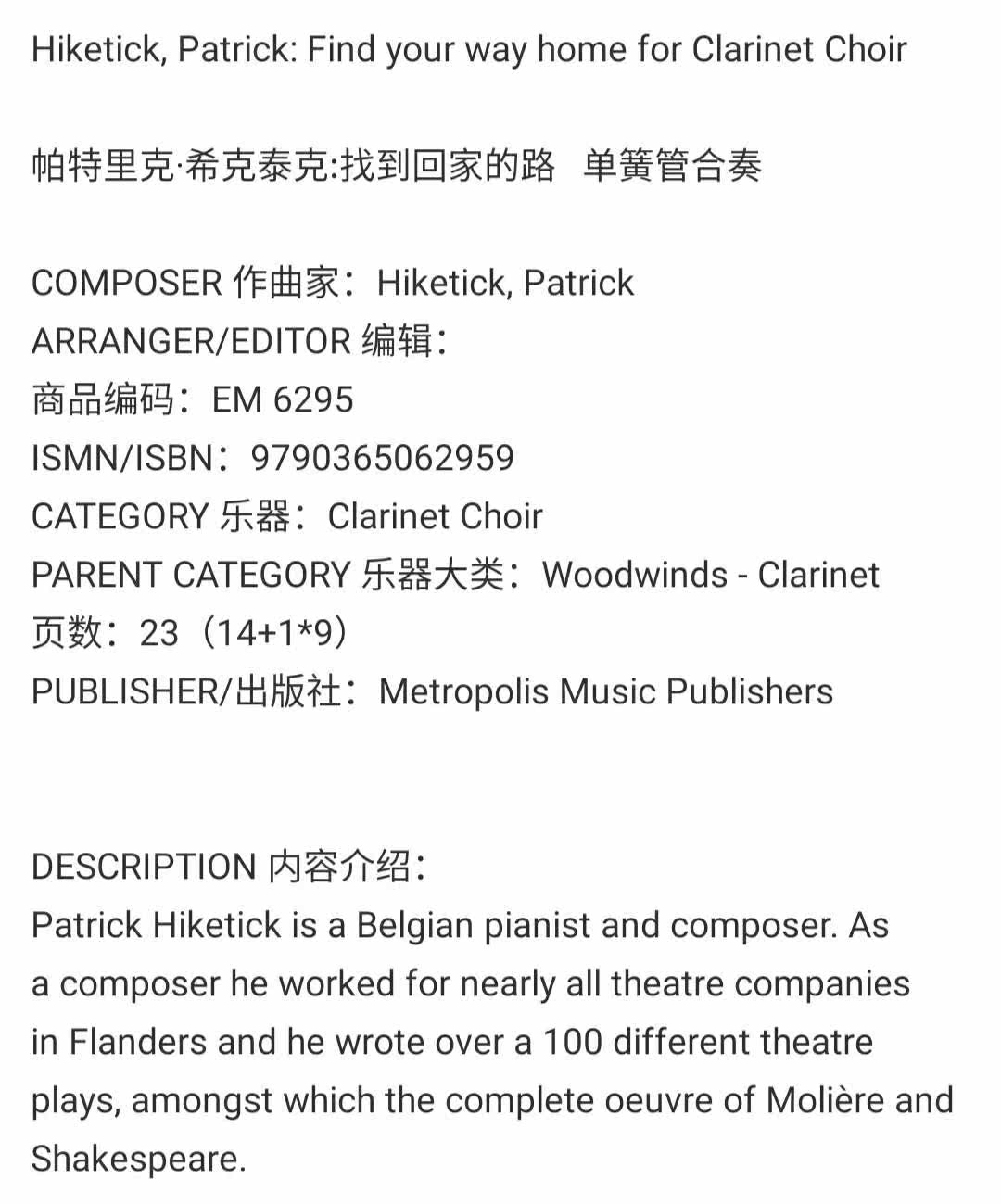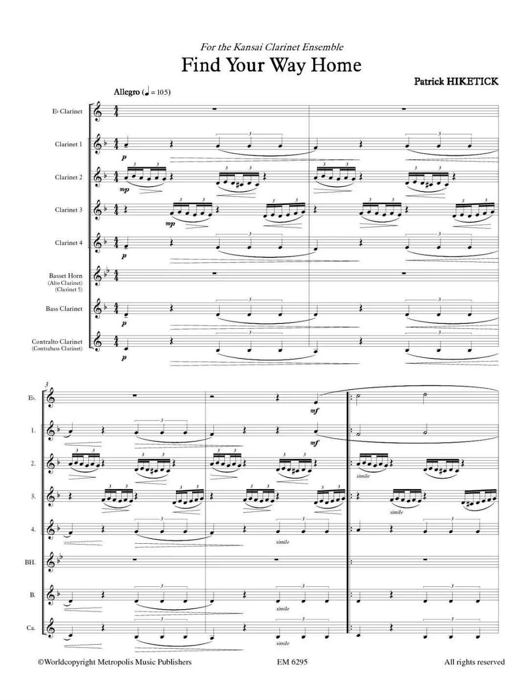 Патрик Хиттах обнаружил оригинальную ансамблевую ансамблевую мегаполис оригинальную версию Metropolis Hiketick Patrick Найти свой путь домой кларнет Em6295