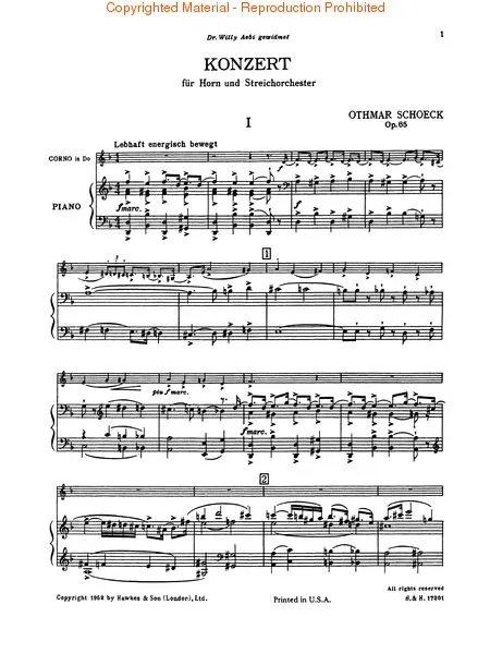 Шек Круговой концерт OP65 Аффилированное фортепианное сопровождение продано -out -f -version оригинальная версия Helende Original версии Othmar Schoeck Concerto для рогового оркестра HL48001046