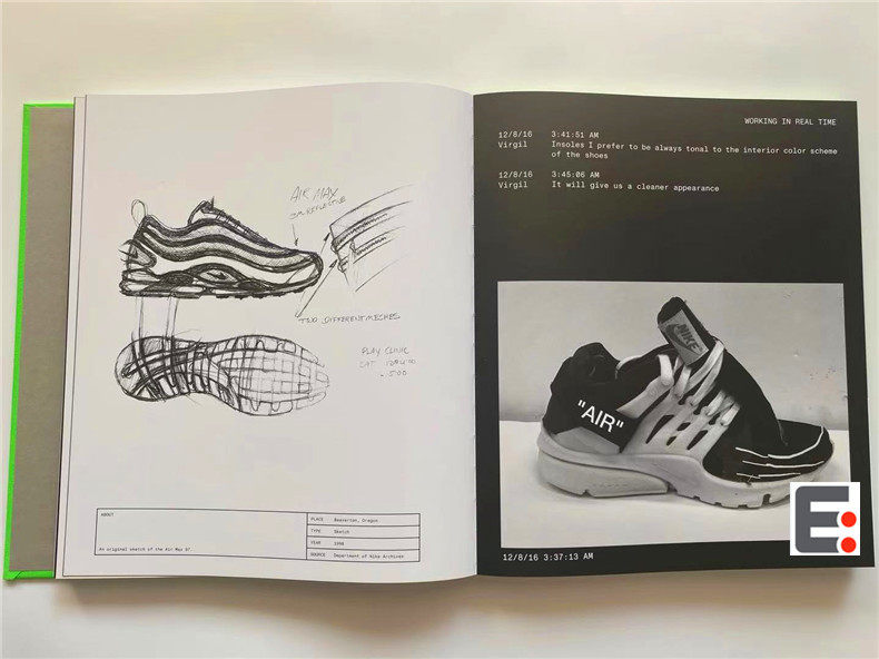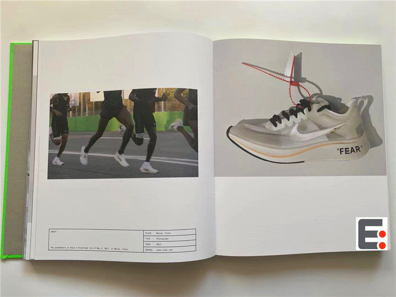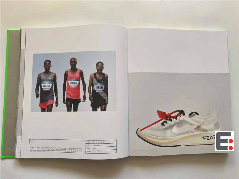 Эта книга записывает метод сотрудничества Abloh и повторяет силу печати.В дизайне Nike и Abloh сотрудничают со знаменитой дизайнерской студией Zak Group в Лондоне.Они совместно задумали компиляцию двух частей, а именно: каталог и концептуальный набор инструментов.Первая часть этой книги показывает визуальную культуру кроссовок, а в словаре второй части определяется ключевые персонажи, места, предметы, идеи, идеи, материалы и сцены, и этот проект разработан из этих аспектов.Николас Шонбергер из Nike, писатель Трой Паттерсон, куратор и историк Гленн Адамсон и собственные слова Вирджила Аблоха установили эту кооперативную работу в истории моды и дизайна.Предисловие Фудзивары помещается в историческую последовательность сотрудников Nike.