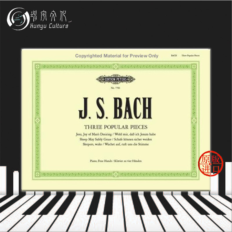Bach Popular Works Three Piano Four -Hed Bombs Peters Peters Оригинальная импортная книга Bach 3 Популярные для фортепиано для 4 рук ep7781