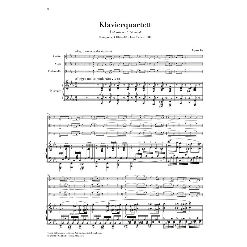 Henle Original Forele Piano Quartet Op15 Fauré Piano Quartet № 1 C Minor Op.15 HN1544