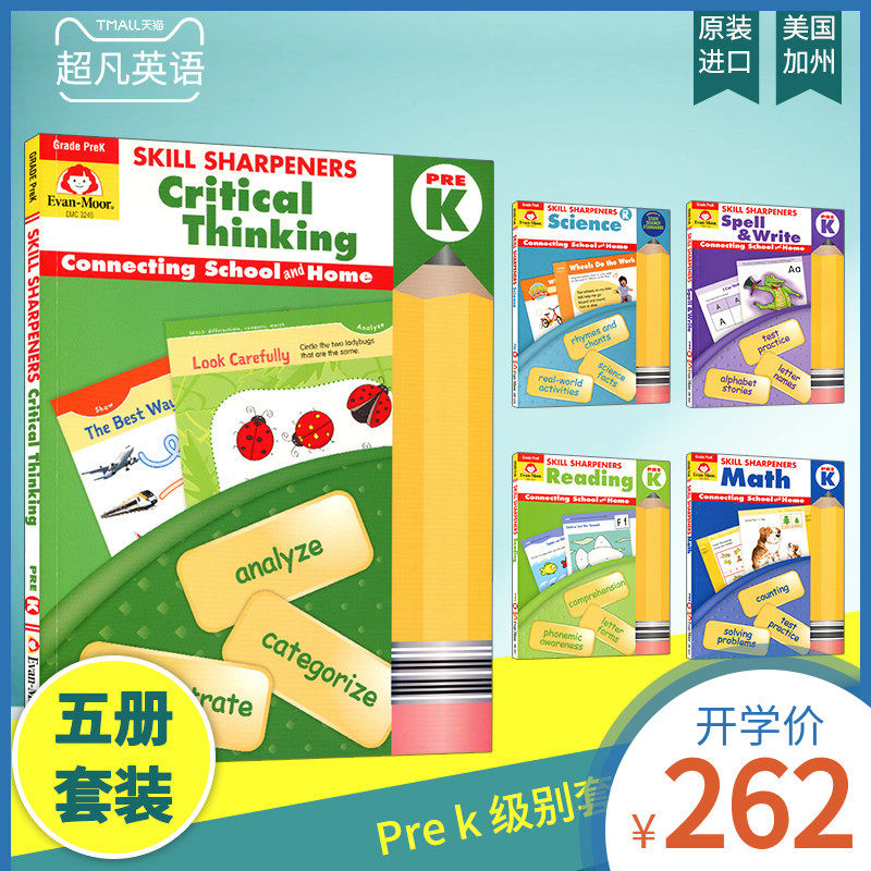 Evan-Moor Skill Shorpeners Prek Set Set пешеходный английский просветление Учебное пособие Учебное пособие навыки навыки карандаш 5 книга пять пакетов детского сада в Калифорния Калифорния Эванмур