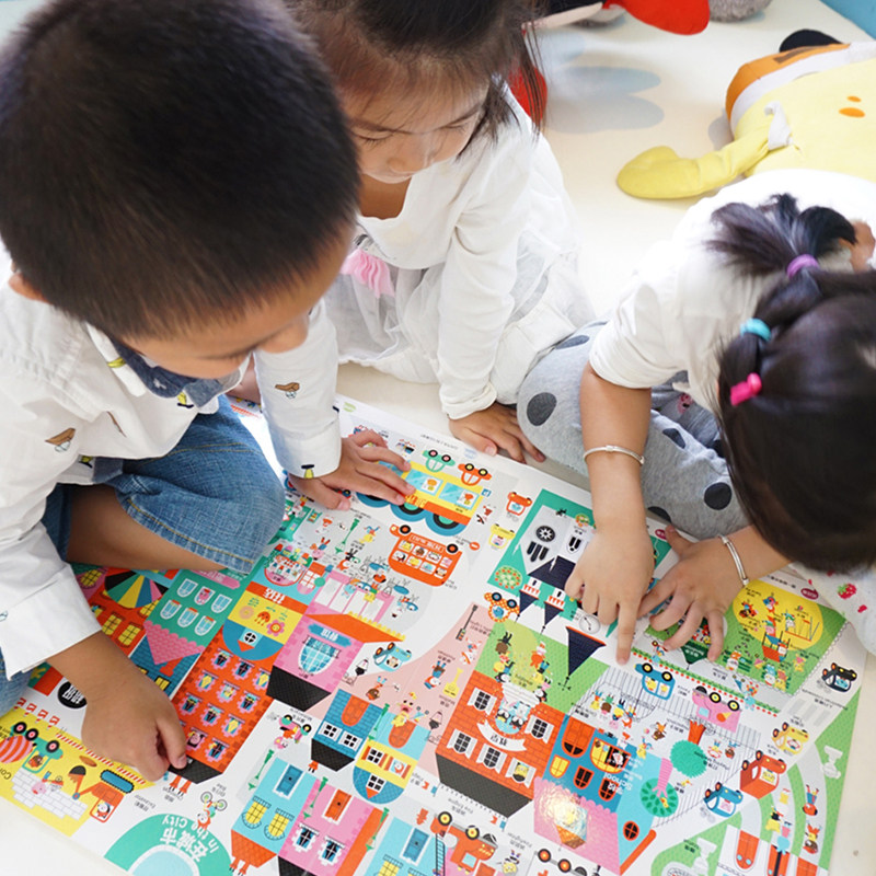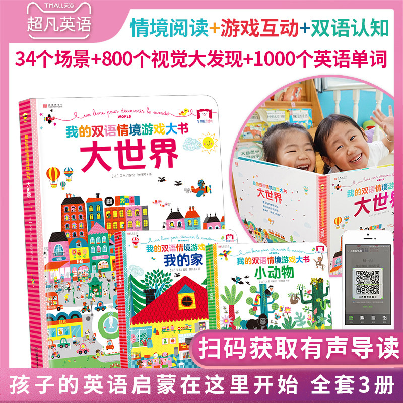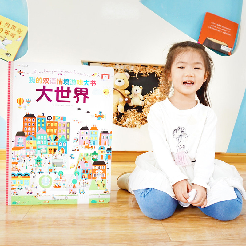 Двуязычная контекстная игра Большая книга, три тома планирования пола Big World, моя маленькая детская концентрация детская книжка с концентрацией