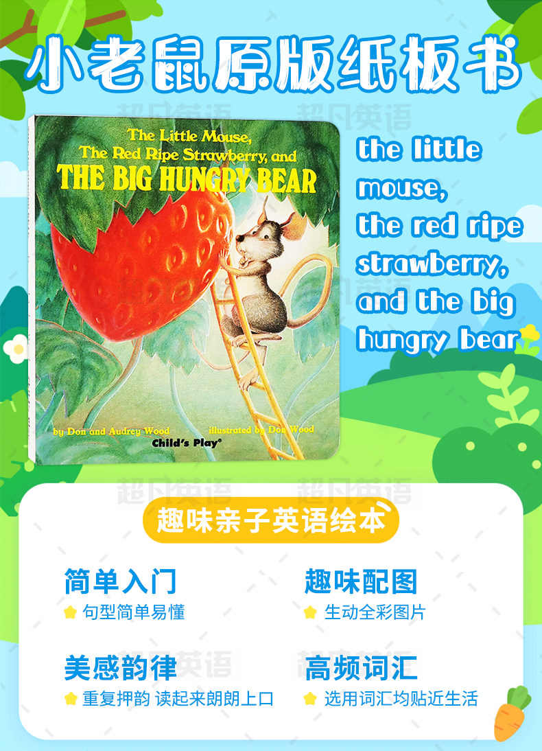 [Аудио -аудио] Маленькая мышь, красная зрелая клубника и большой голодный медведь импортированная английская оригинальная картонная книга родительская английская книжка с картинками детская просветление