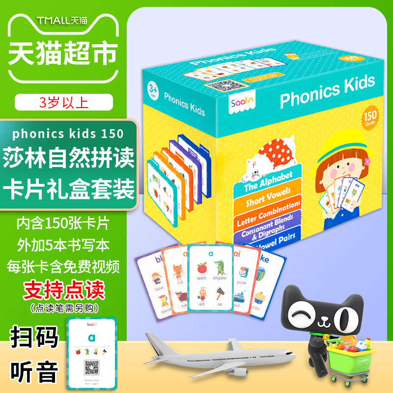 Shalin Natural Speaking Teaching Ads Card Phonics Детская детская английская флэш -карта Saalin