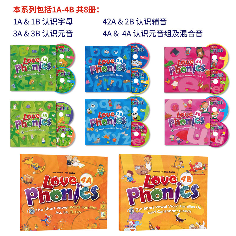 Оригинальный импортный тайваньский детский английский английский язык естественное правописание Учебные учебники 3-6-летние правило английского произношения Love Phonics 4b содержит CD и DVD-обучение видео-анимация детская гласная Группа Просвещение+Гибридный звук