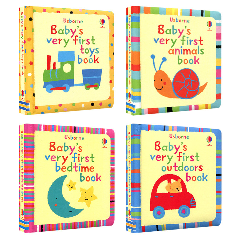[英国进口usborne baby's very first book幼儿启蒙精装绘本撕不烂翻翻书圆角设计4本套装动物 玩具 交通工具晚安系列2-6岁儿童书籍]
