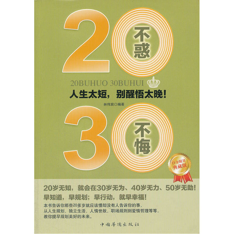 Когда вы читаете «Никакой путаницы в 20, никаких сожалений в 30», вы должны понимать, что если вы хотите не иметь сожалений в 30 лет, вы должны знать, чего вам не хватает и что вам следует делать в 20 лет; как в полной мере использовать полученные знания и где их использовать.…&...Только решив эти проблемы, мы сможем не ощущать возрастающего давления в свои 30 лет и более уверенно двигаться вперед в нашей будущей жизни.