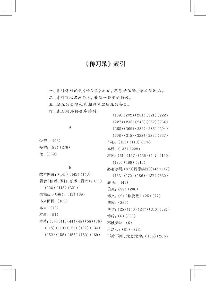 Книга разделена на три тома верхнего, среднего и нижнего.Ван Янминг был убежден и опровергнут философскими взглядами Чжу Си.Чтобы облегчить читателям, в конце книги был установлен полный текст конференции «Чжу Зини -Ниан Нянь Нянь», а указатель оригинального текста «биографии» был составлен с философской Условия, имена и книги.Примечание этой книги описана как цель философии Янмина.