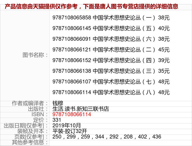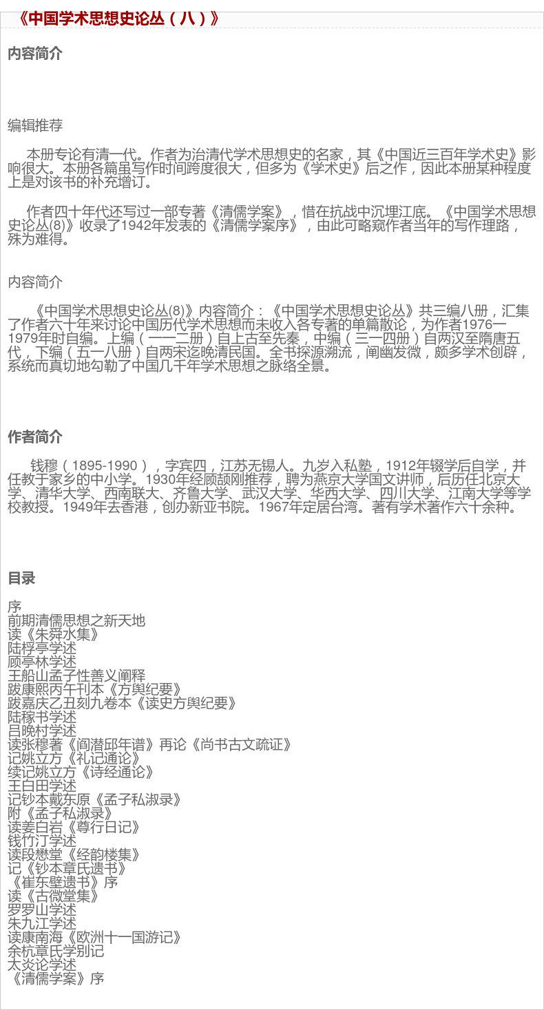 Санлианский книжный магазин [8 томов] История истории китайской академической мысли, Жизнь Цянь Му. Чтение. Новый Чжи Санлиан Книжный магазин Гуманитарные и социальные науки Китайская философия и философия