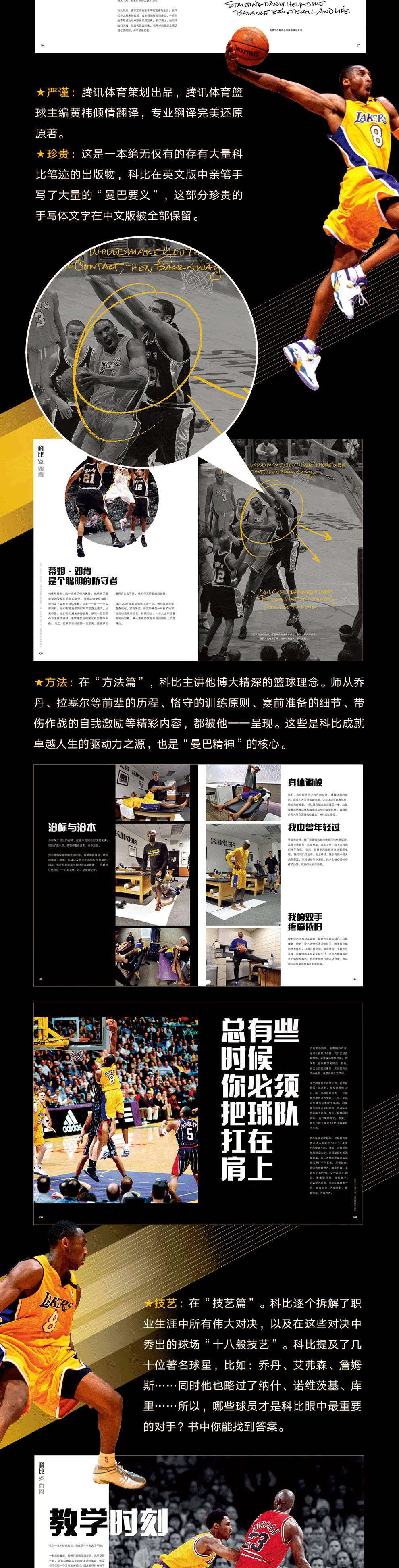 ★ Метод:существовать“ метод&Rdquo; Kobe читал лекции о его глубокой баскетбольной концепции.Из хода предшественников, таких как Джордан и Рассел, принципы обучения усыновления, детали, подготовленные перед игрой, и самооценка травмированных операций, все они были представлены им.Это источник движущей силы Кобе для достижения жизни, а также“ мамба дух&Ядро Rdquo;.