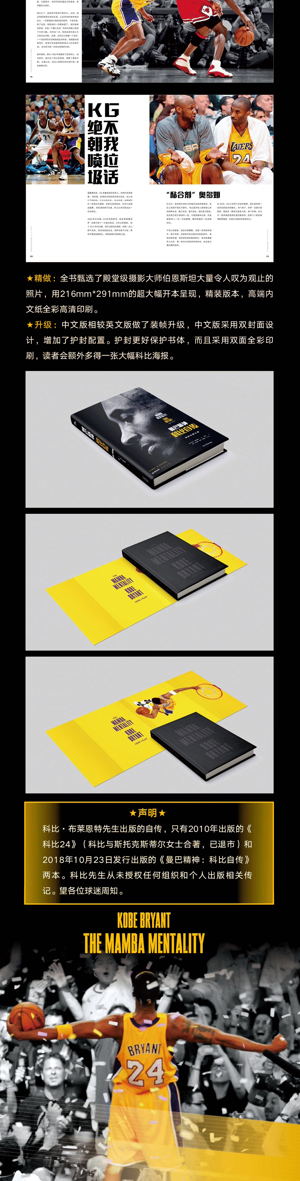 ★ Обновление: по сравнению с английской версией китайской версии, китайская версия имеет обновление декора. В китайской версии используется двойная конструкция обложки, которая добавляет конфигурацию герметизации.Защитная книга хорошо защищена, и используется двойная полная печать, а читатель будет иметь дополнительный большой плакат Kobe.