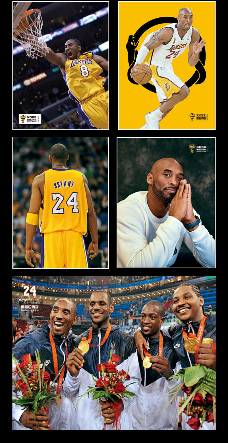 [Подарок 8 изысканных плакатов] Подлинная бесплатная суперзвезда в баскетбол-спортивных спорта Kobe Black Mamba NBA, чтобы отдать дань уважения Коби Брайанту 1978-2020 гг.
