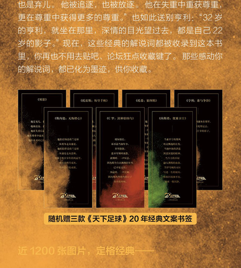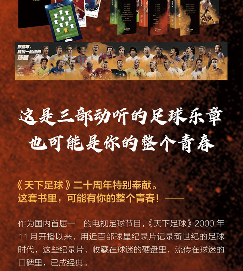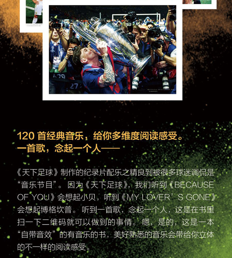 Эти документальные фильмы настолько хорошо -сколько фанатов одержимы в почтовой панели и на форуме, чтобы ввести и опубликовать слова «комментарии этих звезд», и сколько фанатов бросились на музыкальную платформу после прослушивания саундтрека шоу, чтобы получить песни.О, кстати, «World Football» на самом деле является амфибийным шоу, и поклонники думают, что это все еще одно снаряжение“музыкальное шоу”Хорошо……Теперь они дадут вам воспоминания о сорока звездах, передаваемых этими документальными документами.Есть тексты, которые собрали классические слова комментариев в книге и почти 400 фотографий классических слов. Более того, это все еще звуковая книга: пока вы сканируете QR -код, будет музыка, которая выбирает для вас мировой футбол ». Чтение, например, «Бехау тебя», принадлежащее Бекхэму, «Лучшее из меня» Ци Зу, и «Все меня» в команду СА……Все это в этой книге просто хочет пригласить вас встретиться с этими знакомыми лицами в особый день «мирового футбола». Придайте свое счастье и сентиментальное воссоединение.