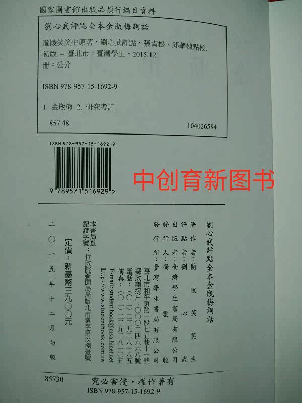 [Скидка с ограниченным временем] Лю Синьву прокомментировал все основные слова Bing Pingmei без удаления романа Taiwan Student Book Company