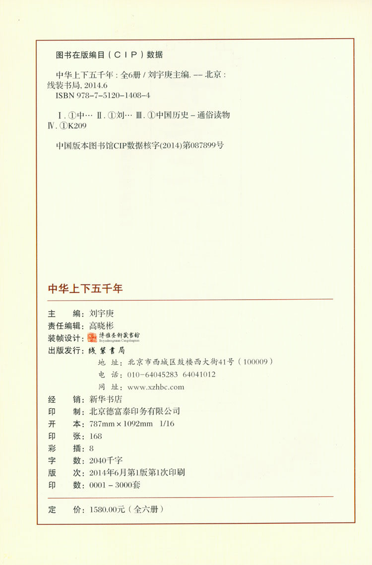 Китай 5000 лет подлинного Китая 5000 -летняя книга истории Полный набор 6 томов 16 открытые цены в твердом переплете 1580