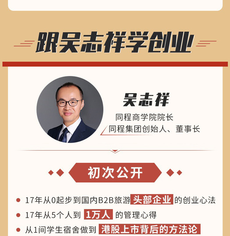 [Служба знаний] Ву Жиксиан, председатель Tongcheng Wu Zhixiang, предоставляет предпринимателям классы предпринимательского роста со зрелой системой обучения и базовой методологией для предпринимательства в Интернете видео -программы учебных программ
