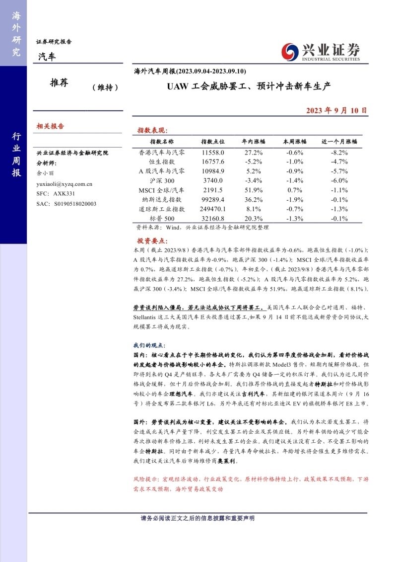 Зарубежная автомобильная индустрия еженедельно: Университет UAW Установил удар, ожидается, что он повлияет на производство нового автомобиля -20230910