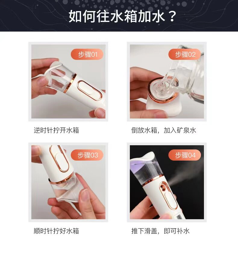 Увлажняющий инструмент нано -брызги 米 补 补 补 补 补 补 补 补 портативная зарядка маленькая паровая лицо горячее спрей дом