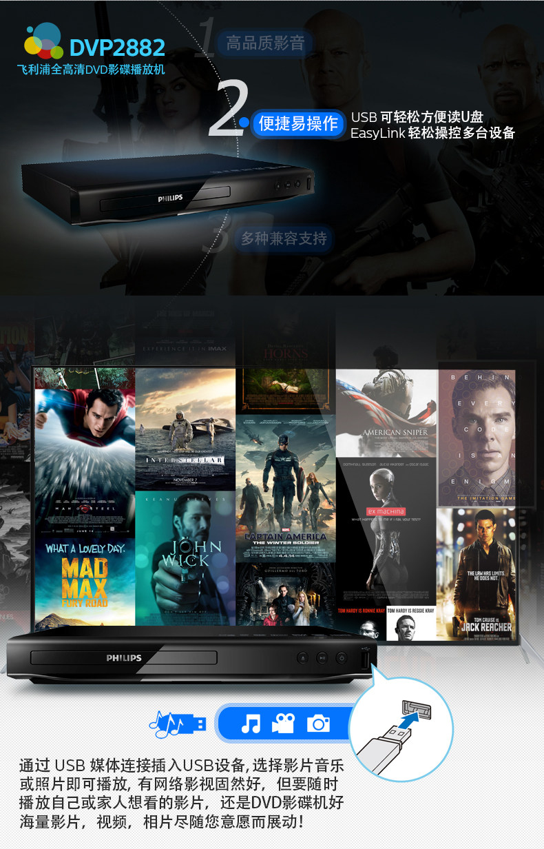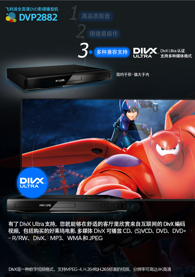 Philips DVP2882 Чтение диска Wangquan HD 1080p DVD VCD CD Movie Play Machine Disc