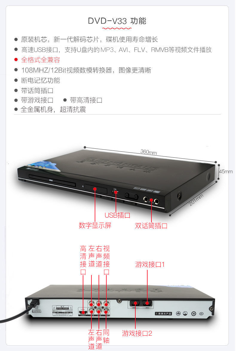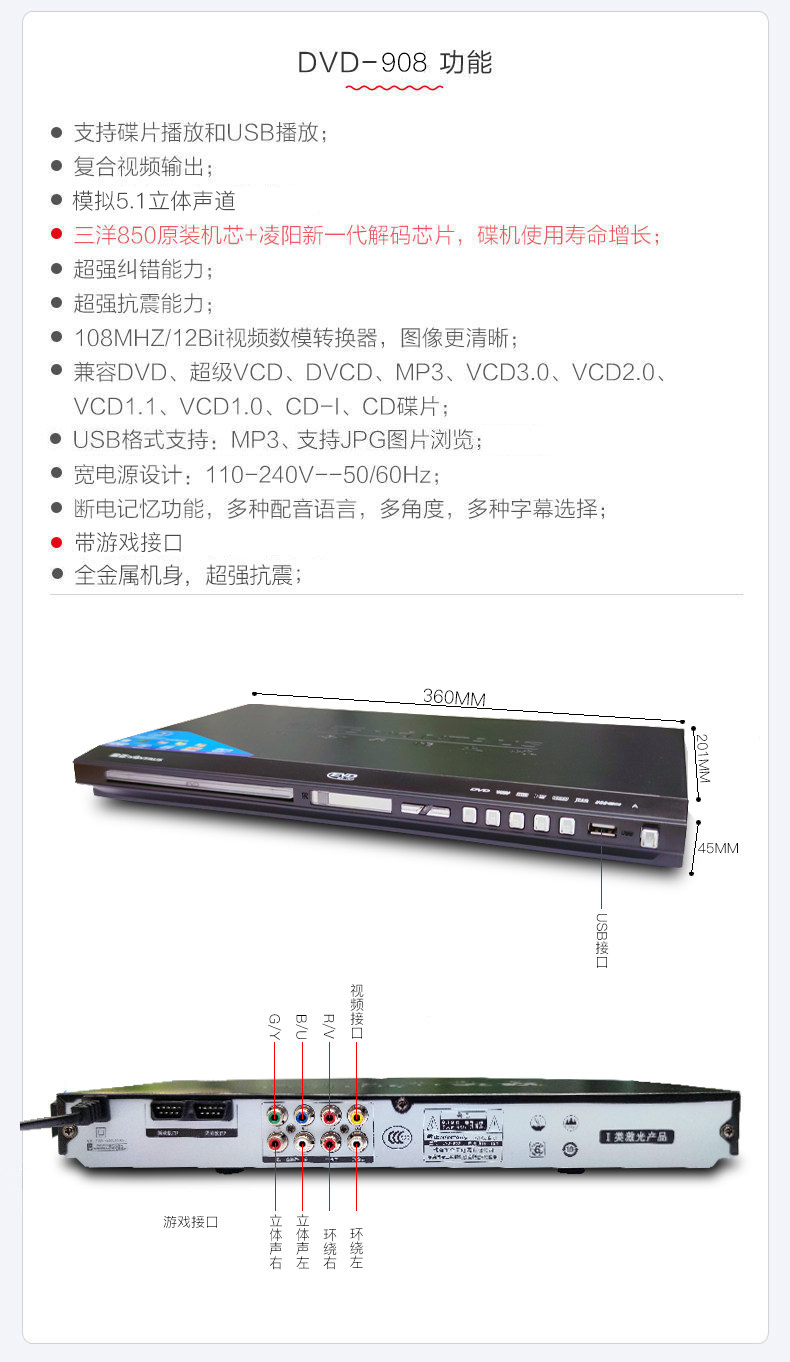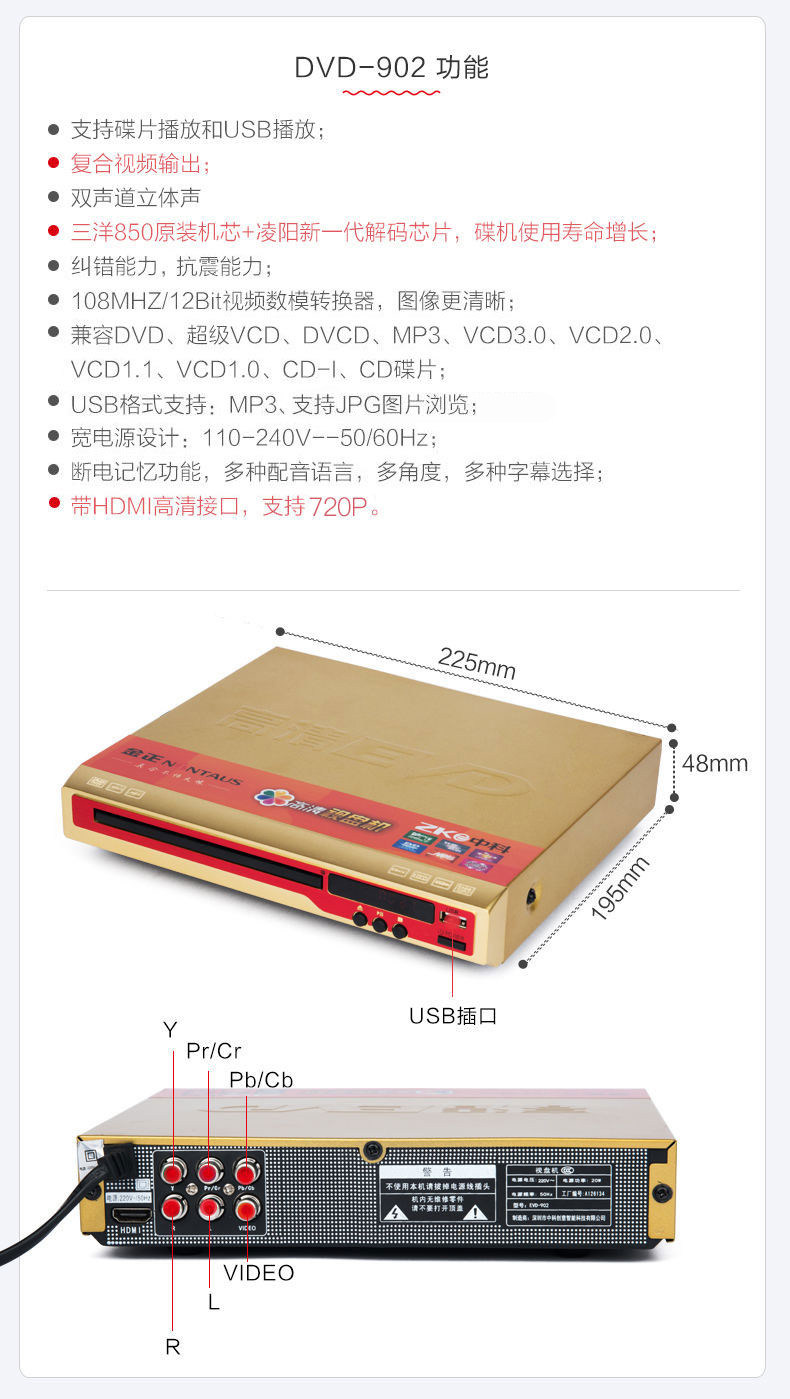 Kim Jong EVD-901 мебель DVD-плеер VCD видео CD CD CD HD KIDS BLU-RAY PORT