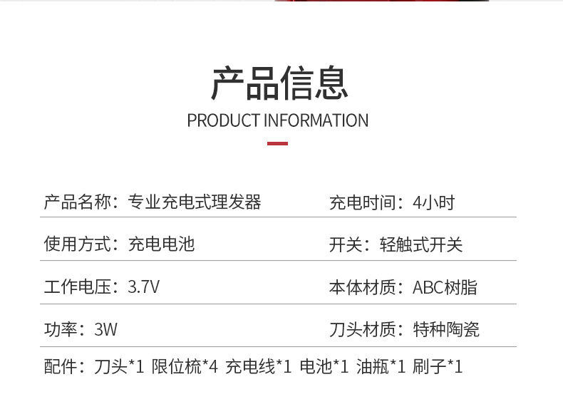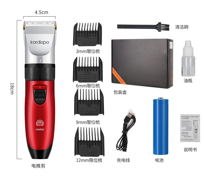 Перезаряжаемая электрическая машинка для стрижки волос с зарядкой для домашнего использования