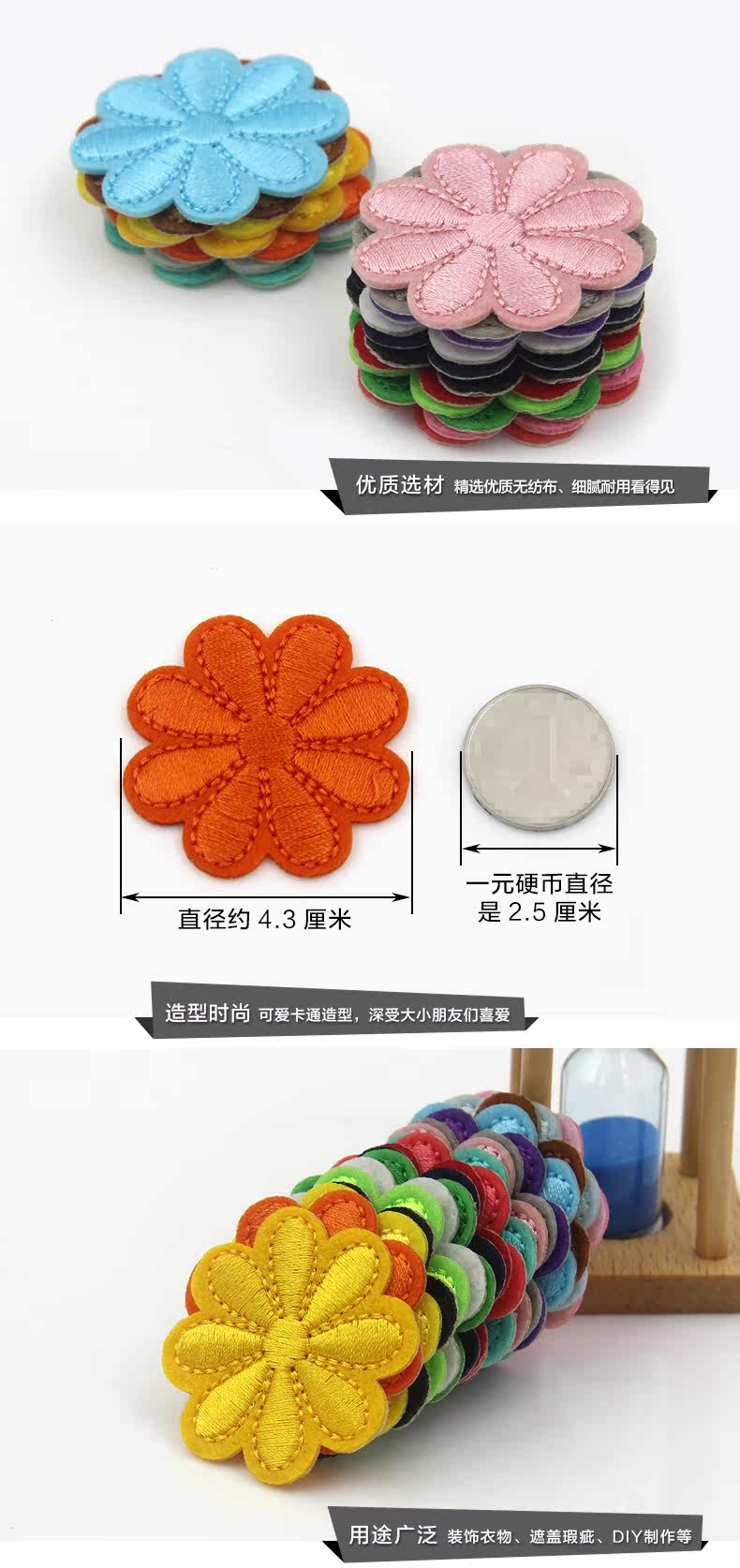 Мультяшный детский клейкий значок ручной работы, пластырь, с вышивкой, в цветочек