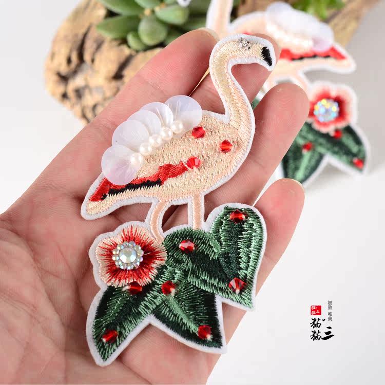 Кошка три вышивных птиц бусинки Плачкование ручной одежды ручной работы.