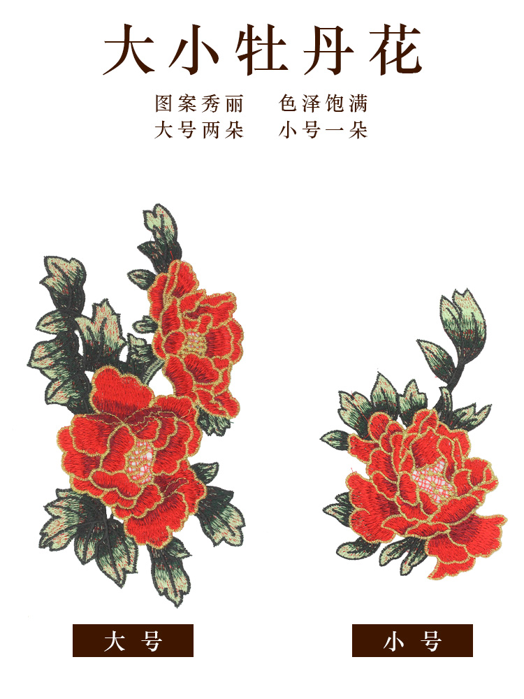 Наклейка с ткани с вышивкой с пятном Ding Ding Ding на большой вышивке Peony Cheongsam