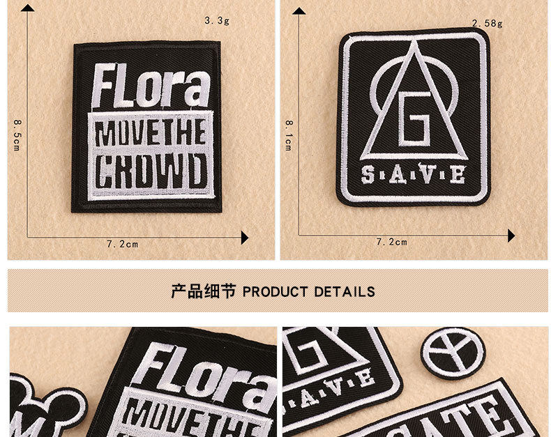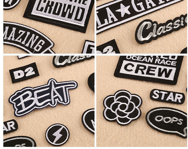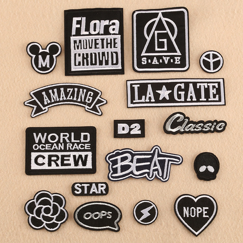 Вышивка Марка английская буква буквы патч одежда аксессуары знаковые ткани ярлык черно -белая вышива