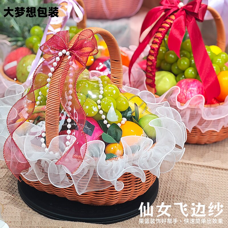 Фестиваль середины осени, украшение корзины с фруктами, сделай сам, летающая марлевая сетка, цветок, подарочная коробка с фруктами, мягкая и нежная марля